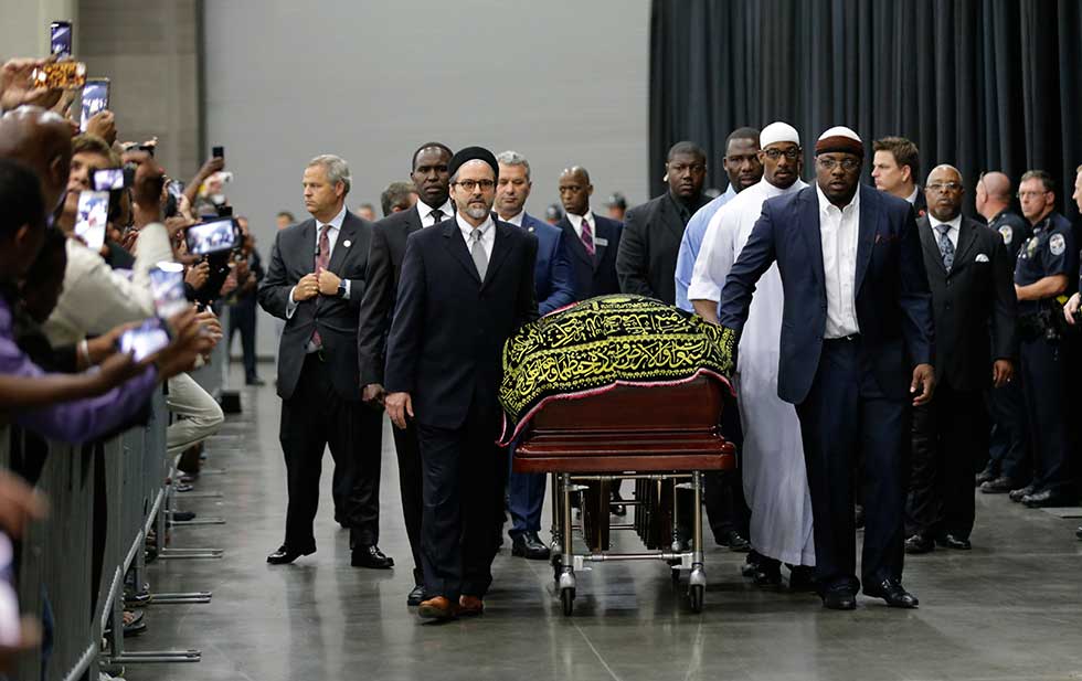 El acto se celebró bajo el rito islámico, al cual asistió el activista por los derechos de los afroamericanos Jesse Jackson, el presidente turco, Recep Tayyip Erdogan, y el promotor de boxeo Donald King, mejor conocido como “Don King”.